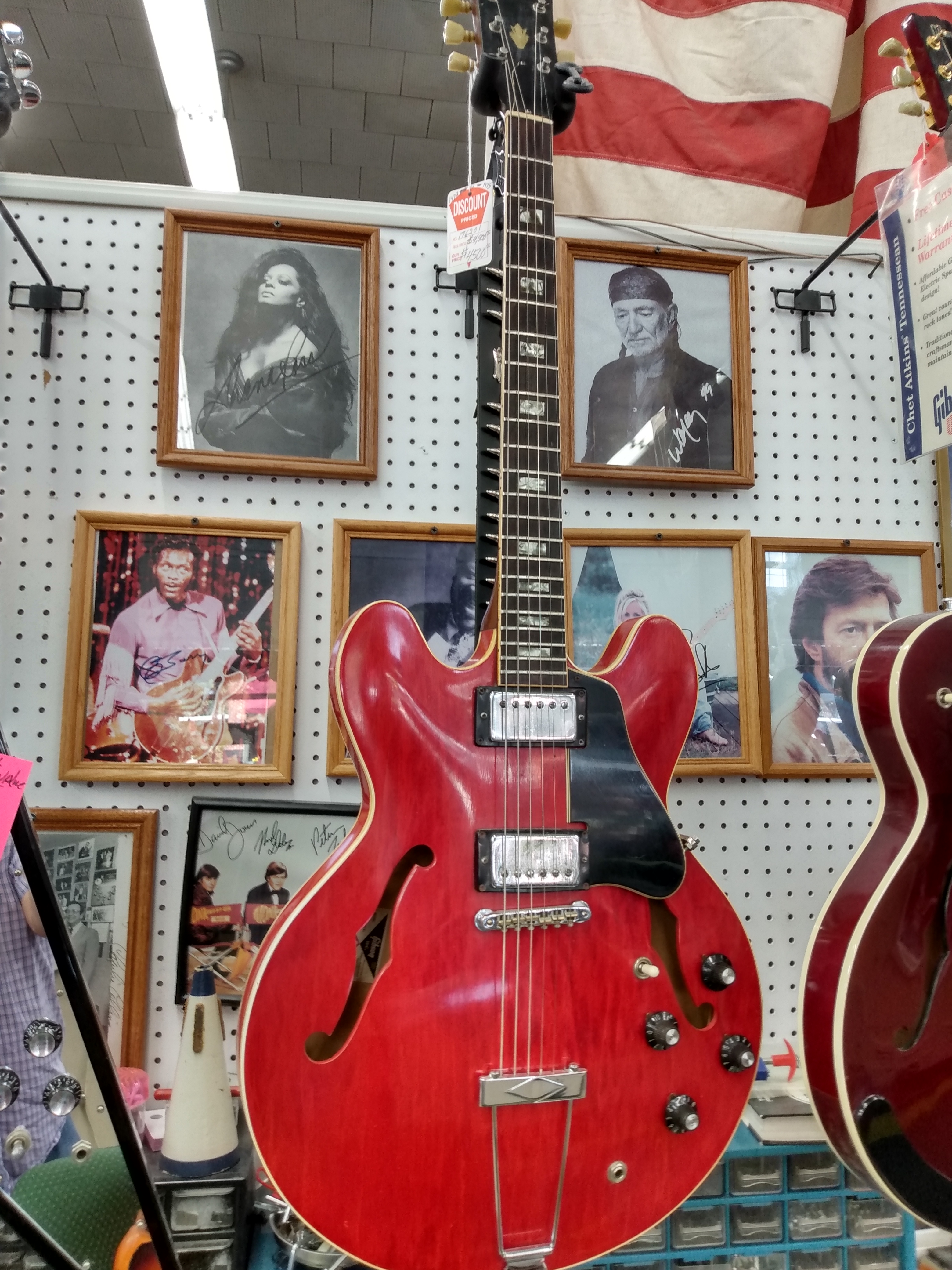 This model is the ES-335TD, the TD standing for thinline, double pickups. Vintage cherry finish.
