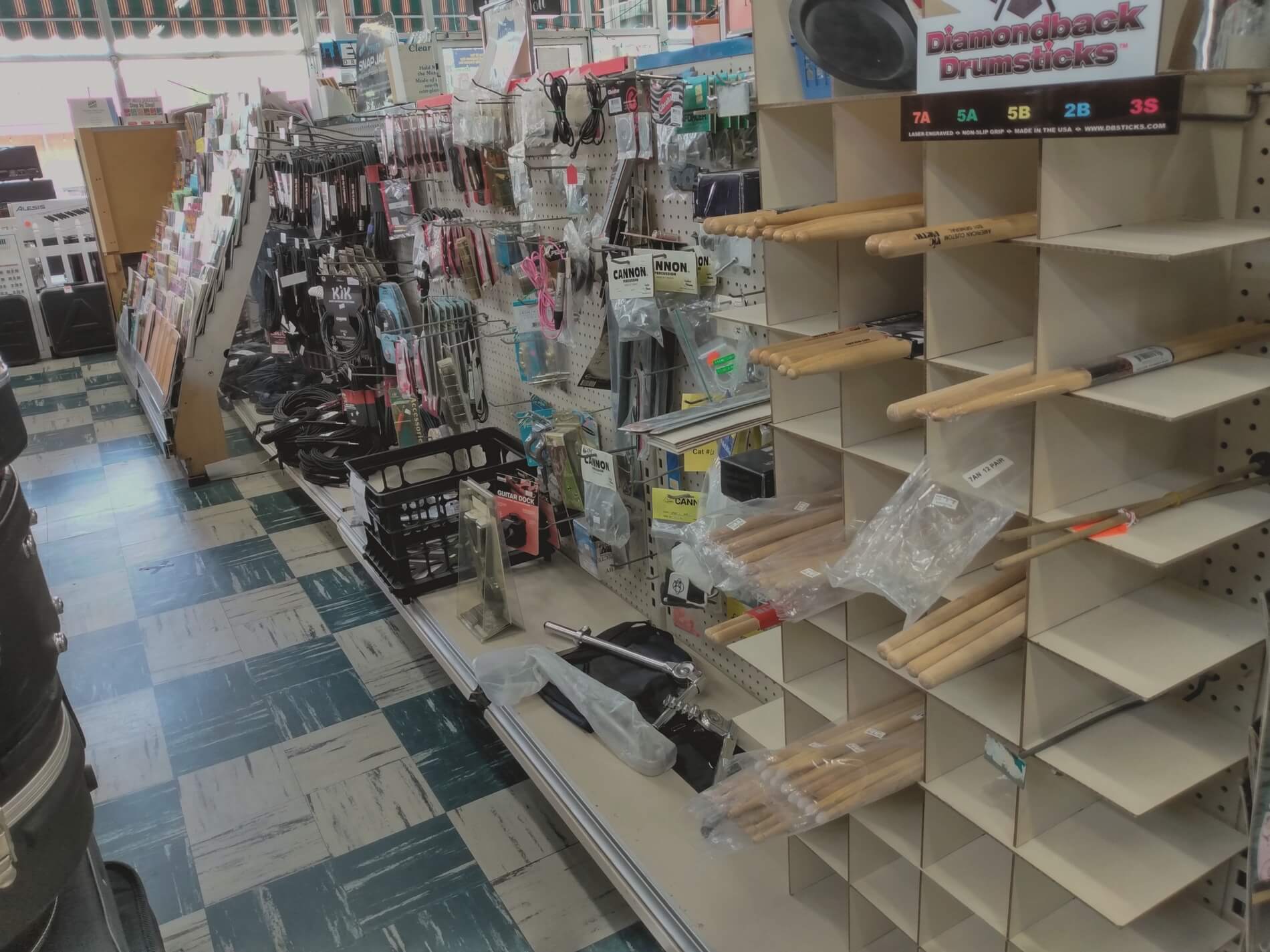 We also carry percussion accessories such as sticks, cowbells, tambourines, pedals, seats, cymbals, & skins.