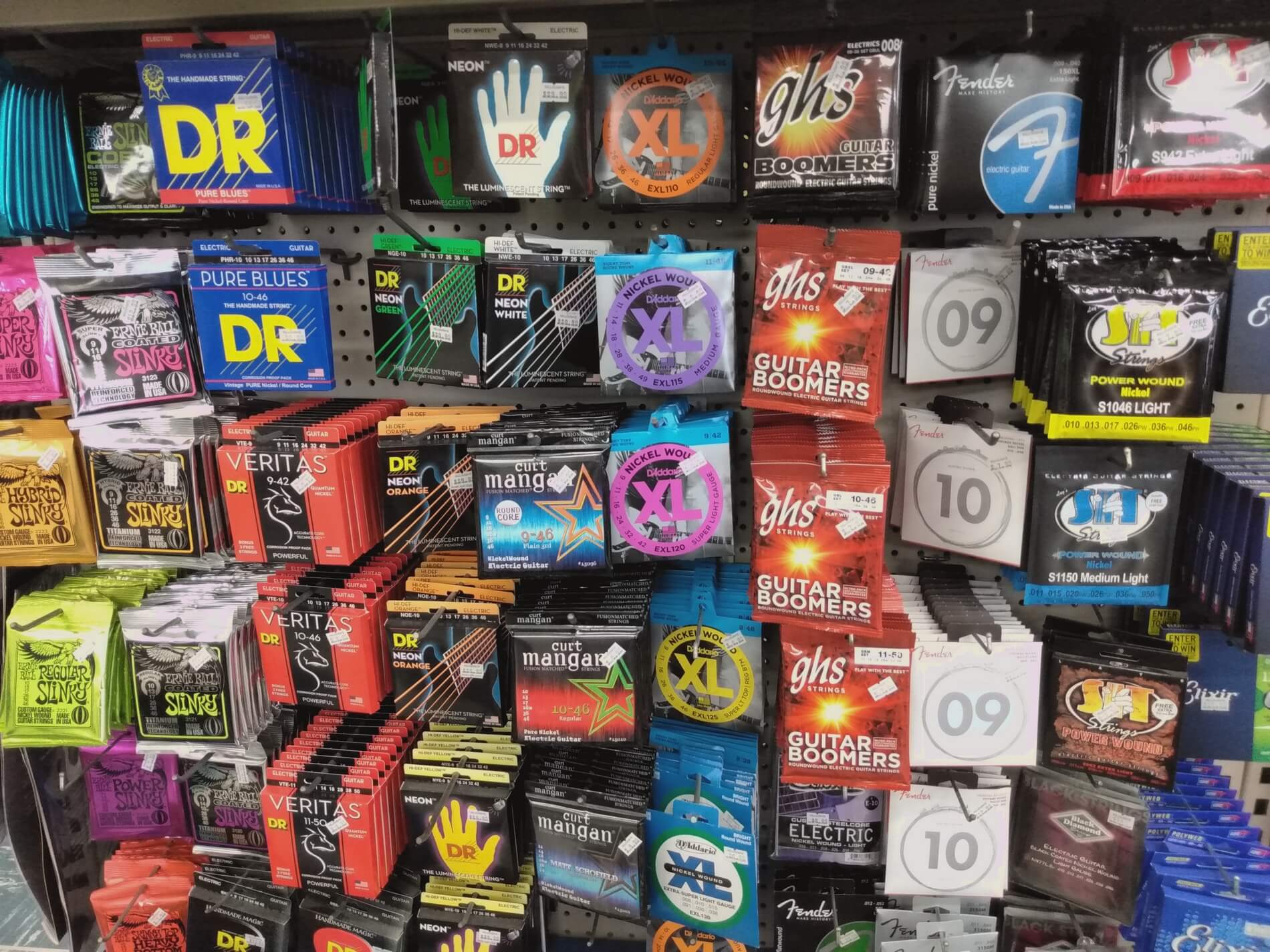 Ernie ball, Elixir, Martin, Fender, GR, GHS, SIT, Didario, John Pearse., Black Diamond, among others..